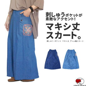 デニム風マキシスカート ロングスカート デニムスカート マキシ丈
