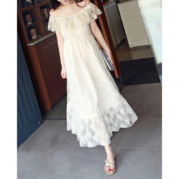 オフショルダーワンピース 通販 ロング マキシ 白 リゾートワンピース