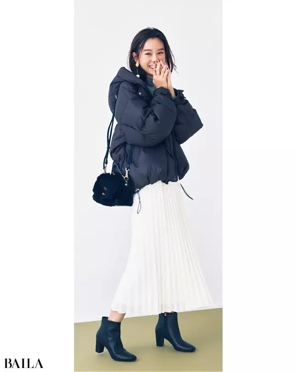 ショートダウンコートのレディースコーデ集 大人フェミニンな着こなし