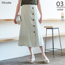 フロントボタンウエストリボンストライプ柄フレアスカート Primazel
